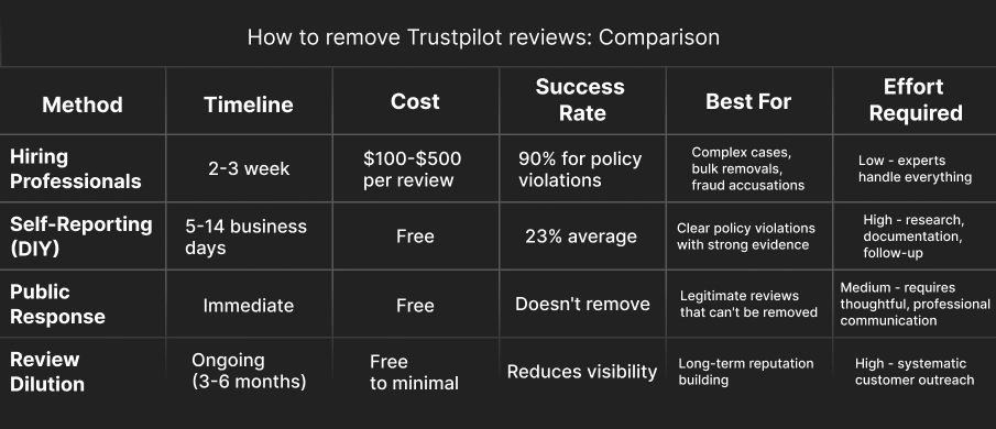 If you prefer handling feedback removal yourself, Trustpilot provides an accessible reporting system.
