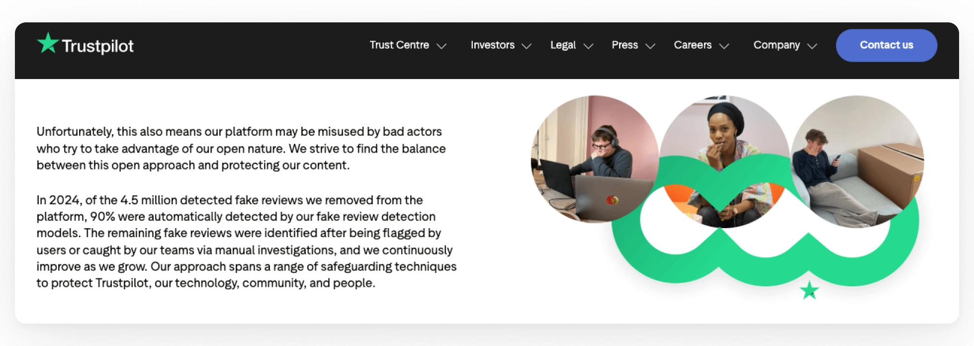 According to Trustpilot’s 2024 transparency report, the platform removed approximately 4.5 million fake reviews globally for violating its guidelines. This represents about 7.4% of all submissions to the platform.