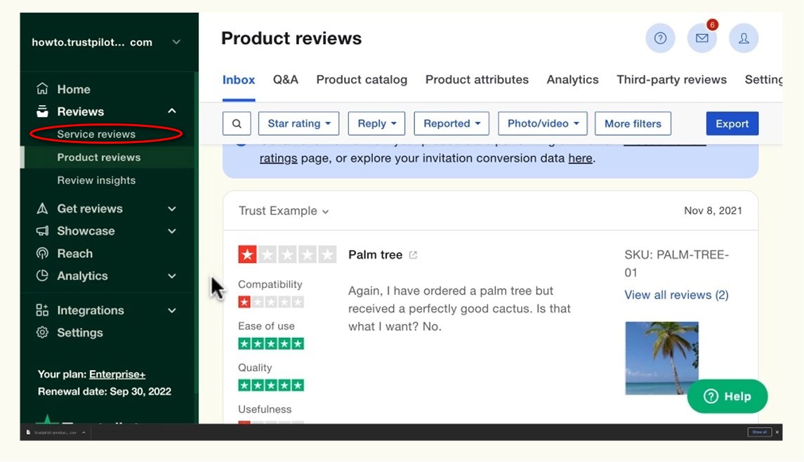 Step 2: Navigate to “Manage Reviews” on the left-hand menu, then “Service Reviews”